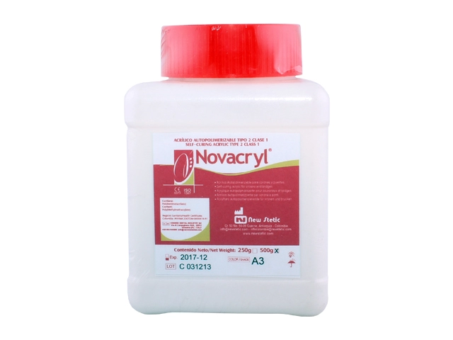Samovezujući Novacryl tečnost i prah je namenjen za izradu i reparaturu mostova i privremenih krunica. Boja zuba je slična nijansi pravih zuba. Dobra dimenzionalna stabilnost se može postići kada se koristi tačan odnos tečnosti i praha, kao što je naznačeno od strane proizvođača. Prirodni transparentni efekat gledji se postiže upotrebom incizalnih boja NovaCryl. Ovaj akrilat ne zahteva toplotnu polimerizaciju. Ako je otisak napravljen pomoću alginata, isprati toplom vodom i ukloniti višak vode sa slabim mlazom vazduha. Izaberite boju Novacryl praha prema boji zuba pacijenta. Podmazite zube i susedna tkiva gingive sa taknim slojem vazelina, kako bi se olakšalo uklanjanje privremenog mosta napravljen od Novacryl-a.
